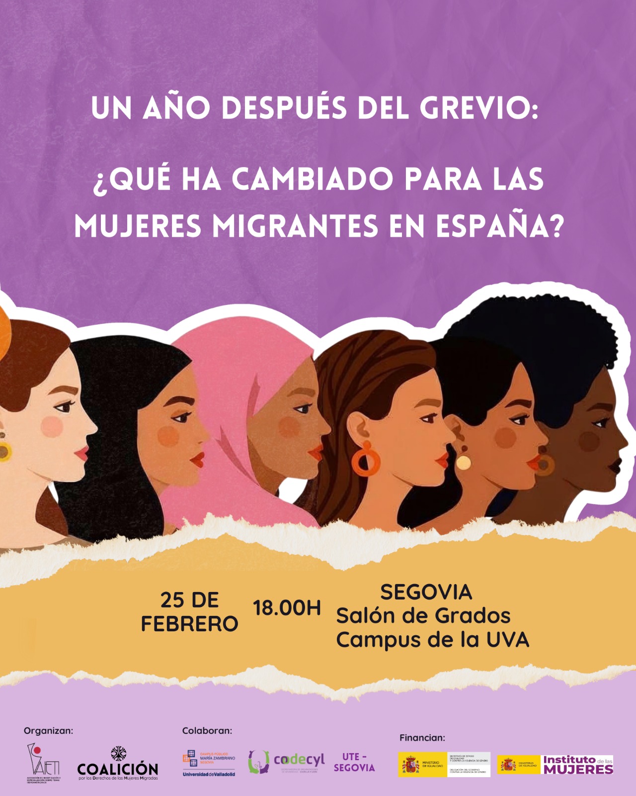 El próximo 25 de febrero, a las 18:00 horas, AIETI y La Coalición por los derechos de las mujeres migrantes, organizan en el Campus María Zambrano de Segovia de la Universidad de Valladolid el acto: